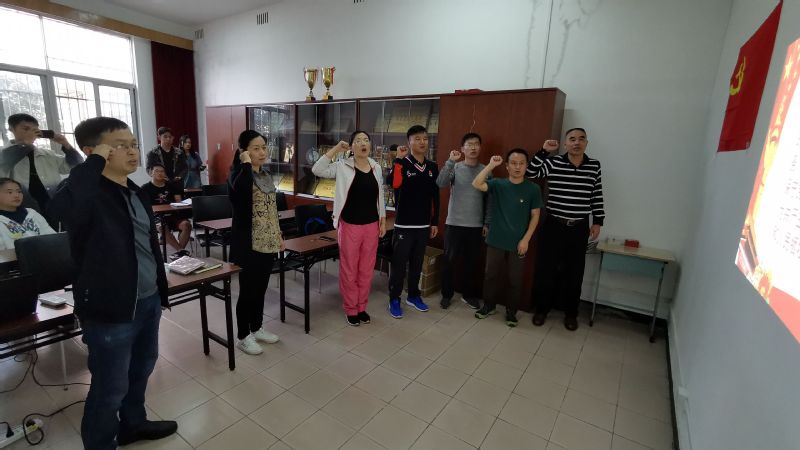 活动开始前,支部为党员同志提前准备了特别的礼物----教师党员入党志愿书的复印件。每个党员翻阅着这份沉甸甸的礼物,不禁心潮澎湃。活动过程中,全体党员佩戴党员徽章、精神饱满,在重读入党志愿中,牢记入党承诺;在重忆入党经历、讲述入党故事中,回顾自身成长历程,感恩党组织的培养;在重问入党初心中,叩问心灵,畅谈感悟,寻找差距;接着,吴月华同志带领大家面向鲜红的党旗进行入党誓词,重温庄严的时刻。随后,各位党员结合各自的岗位实际,阐述了下一步的努力方向。大家表示在日常工作过程中亮身份、服务亮承诺、工作亮标准、担当亮作为,真正做到把活动所学内容入心入脑见于行动,确保活动开展不走过场、不流于形式。确保完成学习教育的每一项任务,真正到理论学习有收获、思想政治受洗礼、干事创业有担当、为民服务解难题、清正廉洁做表率。