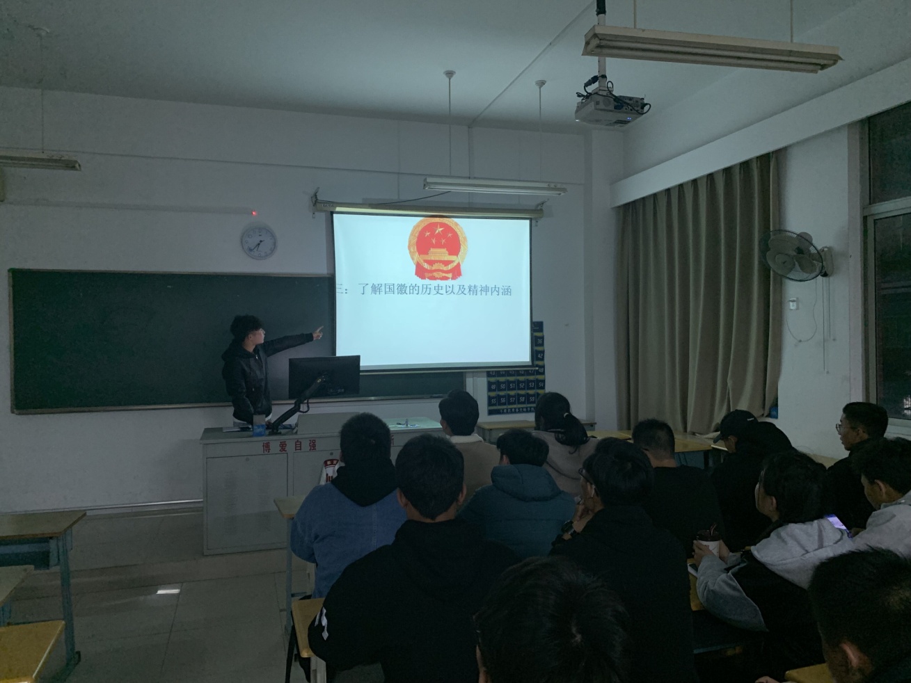 11月19日晚,KY开元集团官网入口1901班博雅楼召开了以《我与祖国共进退》为主题的团日活动。团支部书记包涵硕同学通过短片、视频向大家展示了中华人民共和国国旗、国徽的图案以及他们背后的故事。大家一起聆听了雄壮的中华人民共和国国歌,歌声把我们带到了那个艰苦卓绝、硝烟弥漫的革命年代。接着,大家积极参与了主题讨论,“我为祖国做什么?”“青年人的使命和担当是什么?”