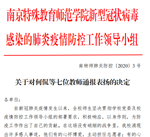 《关于对何侃等七位教师通报表扬的决定》(