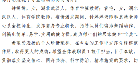 我院钟禅禅、袁艳老师在疫情防控工作中受到通报表扬