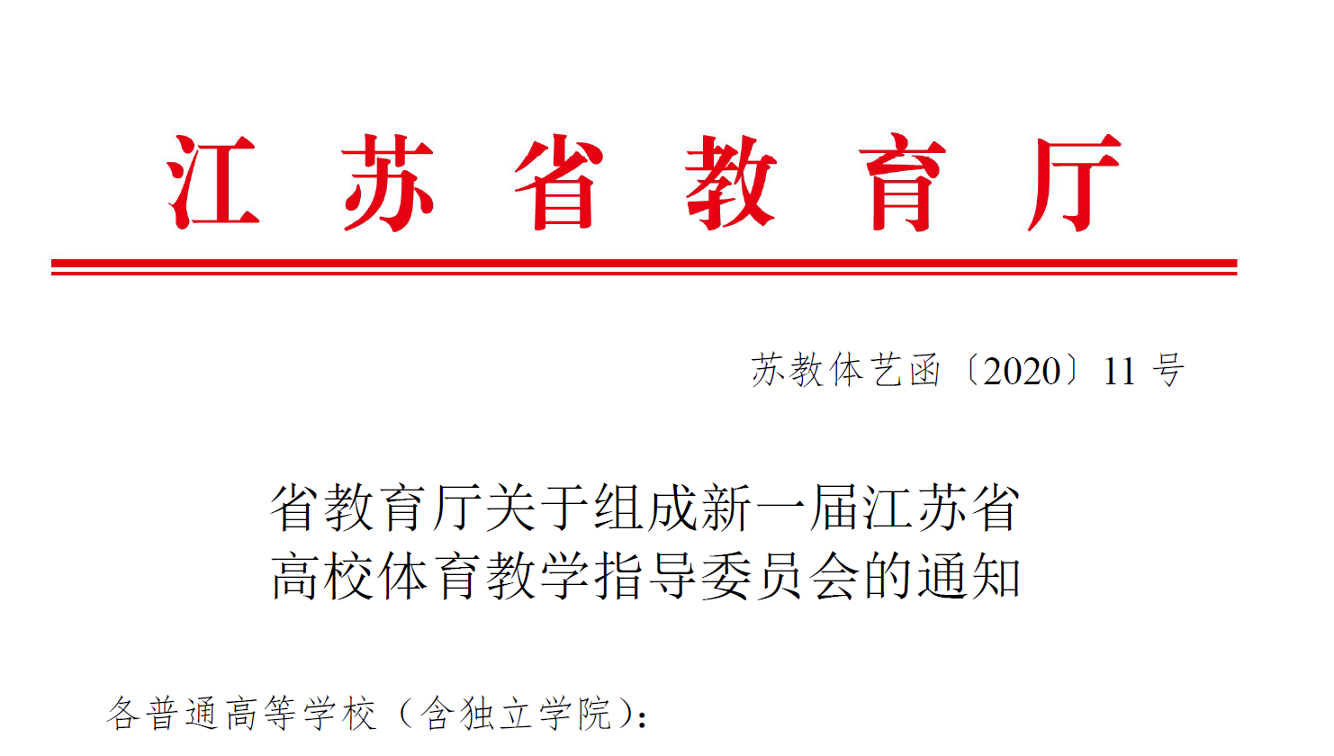 近日,在江苏省教育厅公布的《省教育厅关于组成新一届江苏省高校体育教学指导委员会的通知》(苏教体艺函〔2020〕11 号)文件中,KY开元集团官网入口副院长(主持工作)金梅教授当选新一届江苏省高校体育教学指导委员会委员。