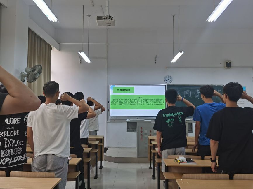 今年是五四青年节101周年,为了大力弘扬五四爱国精神,紧接着,团支书包涵硕,采用理论宣讲与视频赏析的方式,阐述了“五四青年节的由来”,“中国共青团”誓词,“五四精神与现代内涵”等内容,并由江子健同学带领大家重温入团誓词。