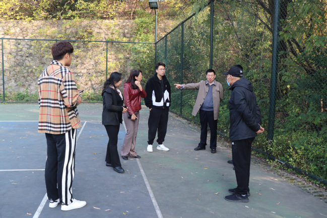 论证会由金院长主持,金院长首先介绍了与会专家并表示热烈欢迎。随后,刘皓愉老师和杜子睿老师分别对游泳池项目和网球场项目的预算方案进行了汇报。汇报结束,为了确保项目的可行性,更好的方便专家了解项目的情况,论证专家们一行到网球场和游泳池进行实地考察。最后回到会议室,专家们对经费预算、场地器材、施工难度、安全问题等方面提出了许多宝贵意见和合理的建议。