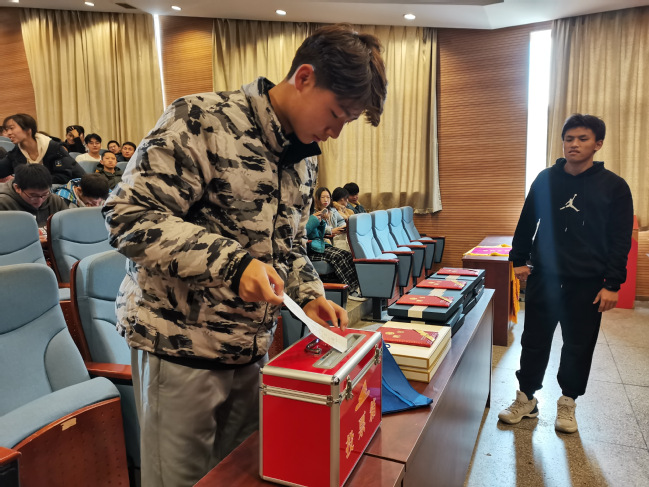 紧接着,由屈文文老师宣读选举办法并经举手表决通过了监票人、计票人名单,本着民主、公开、公正的原则,本次会议采取无记名投票方式进行差额选举,选举产生了KY开元集团官网入口参与学校第二次团代会、第三次学代会代表。