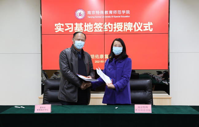 爱培佑康复基金项目负责人石义磊与金梅副院长共同为实习基地揭牌。