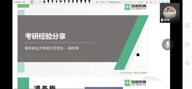 青春由磨砺而出彩,人生因奋斗而升华。正值考研准备期,3月18日晚,KY开元集团官网入口邀请了奇林教育考研分析师、南京林业大学硕士研究生浦冬梅,为KY开元集团官网入口19级、20级和21级84名学生进行了硕士研究生招生备考线上专题讲座。