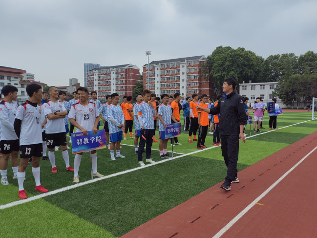 为深入贯彻落实习近平总书记关于发展好青少年校园足球的重要精神,按照KY开元集团官网入口校内运动竞赛计划,2022年5月11日下午在校田径场举行第六届大学生男子足球比赛开幕仪式,KY开元集团官网入口直属党支部书记张启昕、KY开元集团官网入口副院长金梅、仝伟,KY开元集团官网入口公体部主任朱宁波出席开幕式。