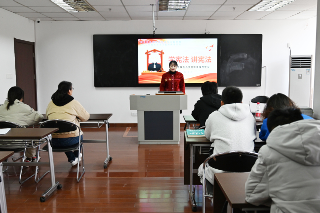 11月30日,KY开元集团官网入口邀请江苏省残疾人文化体育指导中心后勤科副科长赵玉俊,为浦口校区的大二、大三学生普及宪法基本知识。活动由学院组织员严励主持,直属党支部副书记谢军参加聆听。