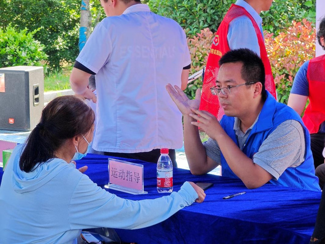 “运动前,首先需要进行热身,从小幅度拉伸开始,不要用力过猛……”身穿“蓝马甲”的伊晓老师正在为社区居民进行细致的运动指导。社区居民反映,不管是自己,还是身边的邻居,普遍缺乏体育锻炼的基本常识。因此,伊晓老师围绕运动的注意事项、运动项目的选择、运动负荷的选择娓娓道来,帮助社区居民解决了运动常识“零基础”问题