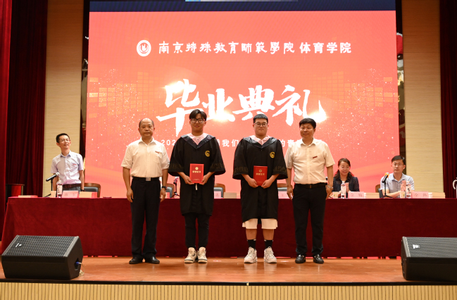 毕业典礼结束后,2023年毕业晚会在热烈的欢呼声和掌声中拉开了帷幕。晚会以“青春•梦想•绽放”为主题,节目丰富、形式多样。传统体育展示《太极》《棍法》展示了体育学子过硬的专业素养;舞蹈《书简》,手持书简、古装水袖随鼓点飞掷,不尽远古之风;合唱《一起向未来》展示了新一代体育青年良好的青春面貌;歌曲《凤凰花开的路口》《海阔天空》《祝你一路顺风》蕴涵了离别是师生间浓浓的情谊。让2023届毕业生在南京特师的点滴光阴和青春回忆汇聚成心头的阵阵暖流,也让晚会在歌声中圆满落下了帷幕。