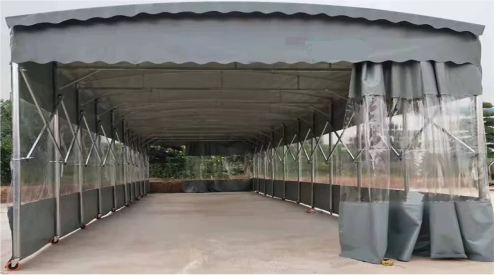 3、安装排球场推拉雨棚,宽度约为16米,拉伸后长度约为33米,带长边围布,边高约为4米,如尺寸有少量误差,以现场勘察确认为准,不得因项目需求与实际有误差为由进行报价变更,雨棚需固定到现有围网框架上。围布颜色待定,参考式样如下:
