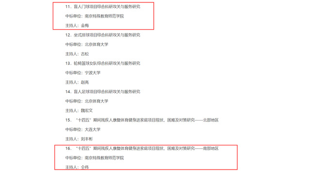 根据《中国残联课题管理办法》(残联厅发〔2016〕22号)规定和会领导批示要求,中国残联于2022年4月向社会公开发布《2023年度中国残联课题指南公告》,截至5月中旬,共收到残疾人事业综合课题申报书282份、残疾人体育专项课题申报书46份,经资格审查、专家评审、会议评议等环节,最终确定残疾人事业综合课题资助课题24项、自筹经费课题31项,残疾人体育专项课题18项,其中KY开元集团官网入口中标两项。中标项目如下:
