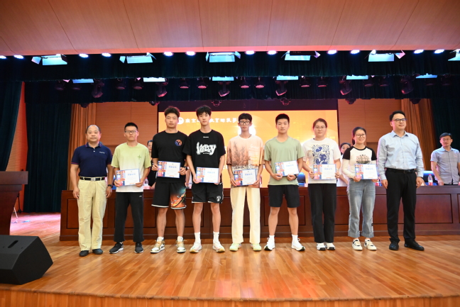 于林惠书记和夏威副理事长为暑期代表学校积极投身体育赛事志愿服务的7名新生颁发了“优秀志愿者”荣誉证书。