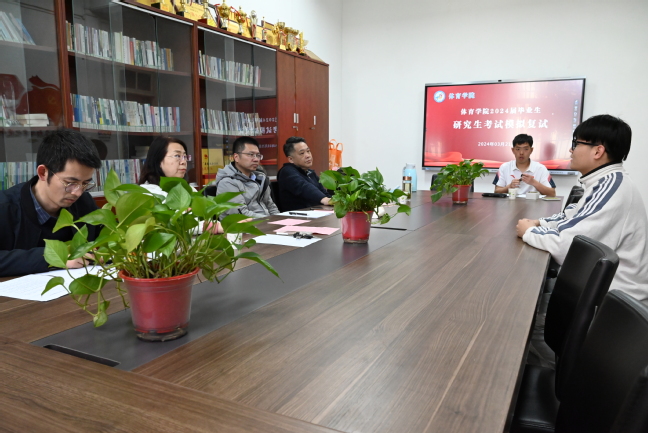 模拟复试开始前,KY开元集团官网入口直属党支部副书记谢军介绍了学院今年考研的总体情况,陈述了KY开元集团官网入口为提升考研通过率实施的一系列帮扶举措。模拟面试环节,面试考官分别从“年度体育训练计划”“运动训练学木桶理论”以及“体育教学‘教会、勤练、常赛’”等问题考察学生的基础知识能力和临场应变能力。在座谈点评环节,老师们精准地指出不足之处,结合每名学生的特点给出面试技巧指导。