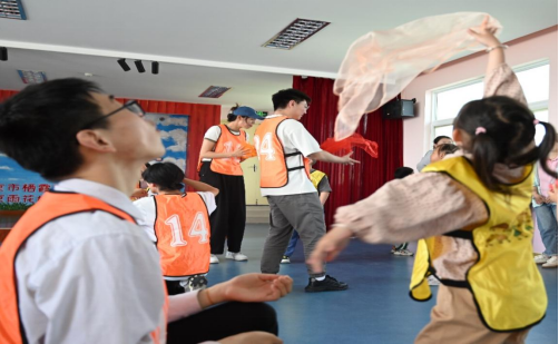 紧接着,特殊儿童们在志愿者的陪伴下开始了体育游戏活动,顶沙包、踢足球、套圈,在一次次的体验中小朋友们尽情享受着体育游戏带给他们的运动乐趣,每个小朋友充满活力的表情和饱满的笑容处处展现着关爱合作、共同进步的美好场景。简单而有趣的体育游戏,不仅增进了大朋友和小朋友之间的互动和合作,也传递出团结友爱的力量,为他们带来了快乐和鼓舞,更彰显了社会各界对特殊儿童的关爱和支持。