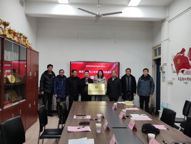 为深入贯彻落实习近平总书记关于全民健身和全民健康的重要论述重要指示,推进残疾人体育事业又好又快地发展,12月27日下午,KY开元集团官网入口与南京市残疾人联合会举行南京市残疾人体育训练实践基地挂牌仪式。南京市残疾人联合会一级调研员曹志祥、宣文处处长吴正中、四级调研员王友松,KY开元集团官网入口党委常委、纪委书记、二级高级监察官于林惠、KY开元集团官网入口直属党支部书记陶刚、KY开元集团官网入口主持工作副院长金梅、副院长仝伟、公共体育系主任朱宁波出席,会议由学院直属党支部书记陶刚主持。