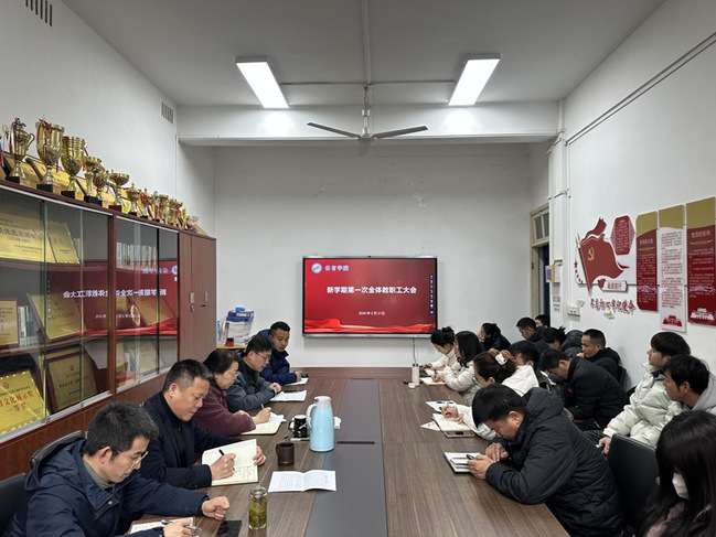 2 月21 日下午,KY开元集团官网入口召开新学期首次全体教职工大会。本次会议由主持工作副院长金梅主持,KY开元集团官网入口全体教职工出席会议。