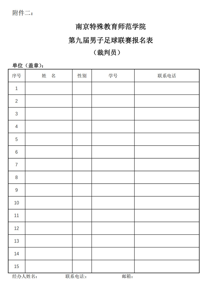 (三)各参赛队必须在 2025 年 5 月 12 日 17:30 前提交报名材料(见附件一、二)。每队限报领队 1 人、教练员 1 人、运动员 15 人,并确定号码(号码须为 1-35 号,并与报名表相符)、裁判员至少 2 人(运动员可兼),必须加盖学院公章,送至KY开元集团官网入口 B105 办公室赵云老师处,并将填好的报名表电子版连同球员电子保单发送至邮箱 2781151673@qq.com。