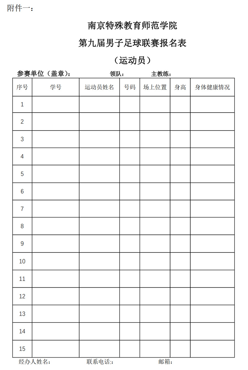 (四)报名表在赛程期间有效,如开赛前参赛人员产生变动,必须事先报体育学院,获批准后方可参赛。赛程期间禁止调整参赛人员。