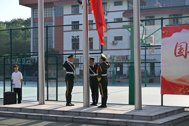 7点20分,主持人宣布升旗仪式正式开始。国歌声响,红旗飘扬,现场师生面向国旗肃立,行注目礼,目光紧紧追随国旗的飘动,心中充满对伟大祖国的热爱和崇高敬意。